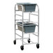 Easily transport bulk food with this New Age Heavy-Duty series lug dolly. Designed to hold 4 lugs (sold separately), this rack is perfect for transporting food, dishes, or even equipment throughout your facility. It holds lugs by the bottom instead of the lip, allowing you to store various sizes of lugs up to 27" x 16 1/4" x 9 1/2". Plus, it features 10" of spacing between each shelf. This rack has a 400 lb. capacity and rolls on (4) 5" stem-type swivel casters for easy mobility.