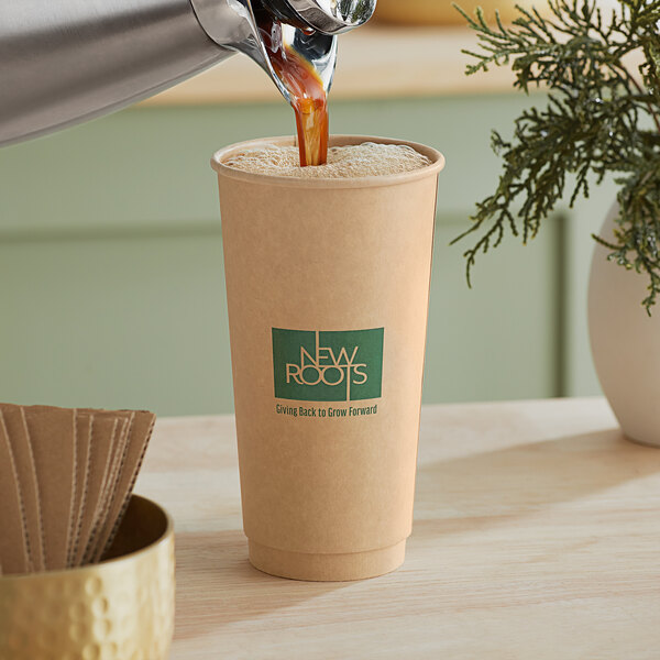 Its versatile kraft color has simple, clean graphics and conveys a neutral look that will blend into any establishment. It is the ideal hot beverage solution for concession stands, coffee shops, convenience stores, cafeterias, or office break rooms. The PLA lining ensures that the cup won't weaken from holding hot liquids over time, making it perfect for your piping-hot signature beverage.