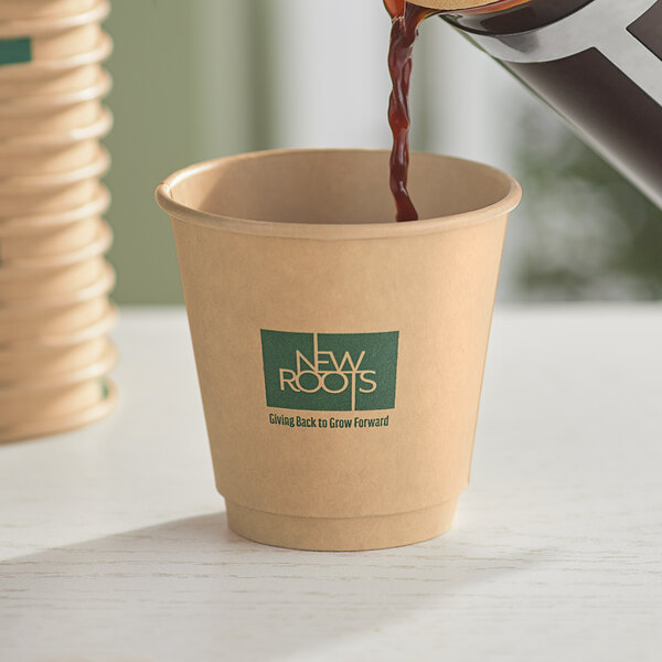 Its versatile kraft color has simple, clean graphics and conveys a neutral look that will blend into any establishment. It is the ideal hot beverage solution for concession stands, coffee shops, convenience stores, cafeterias, or office break rooms. The PLA lining ensures that the cup won't weaken from holding hot liquids over time, making it perfect for your piping-hot signature beverage.