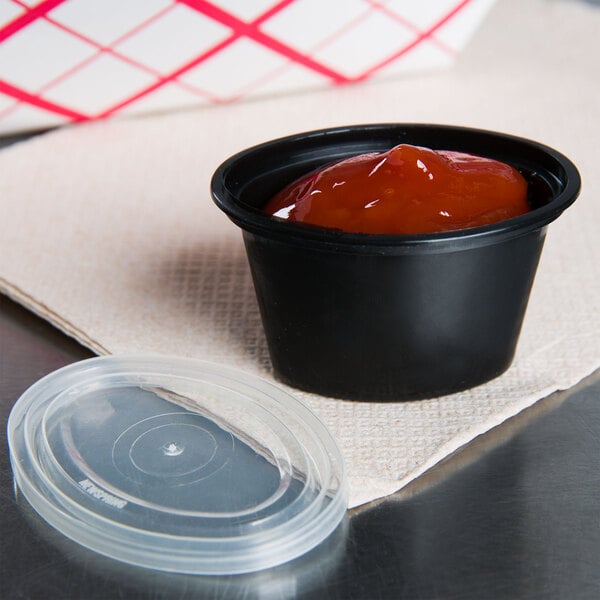 I really like these PC cups. The lid has a quick and sturdy seal. I use these a lot for vinaigrettes and dressings and they do not leak. I think the oval shape also helps them sit in containers or salads and makes the packaging more attractive overall.