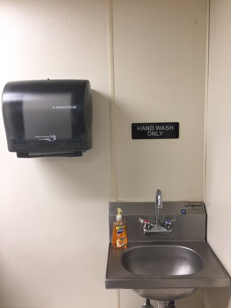 Customers appreciate the sign's clear lettering, durable plastic construction, and easy installation with pre-applied adhesive. It meets health department requirements and is considered a good value. Some customers note the adhesive may need reinforcement for lasting placement.