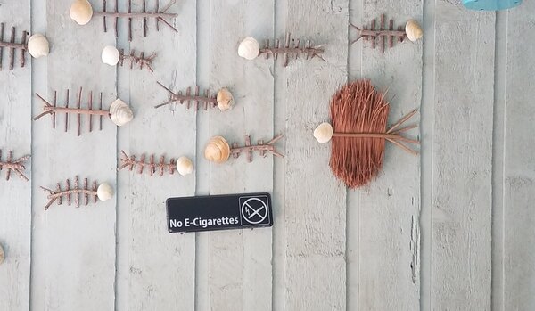 We banned everything that even looks like tobacco, including fake cigarettes. These signs are posted throughout the facility. Now if we could just get people to actually understand what the sign means. Great product just what I wanted.
