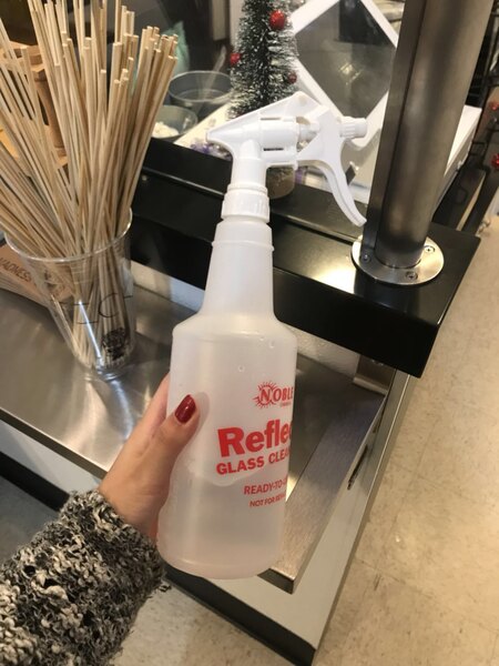 We like this 32 oz. Labeled Bottle for Noble Reflect Glass, Its really nice the fact that it has directions for use printed on the back, also the graduation lines are good because cleaners can know how much cleaner use.