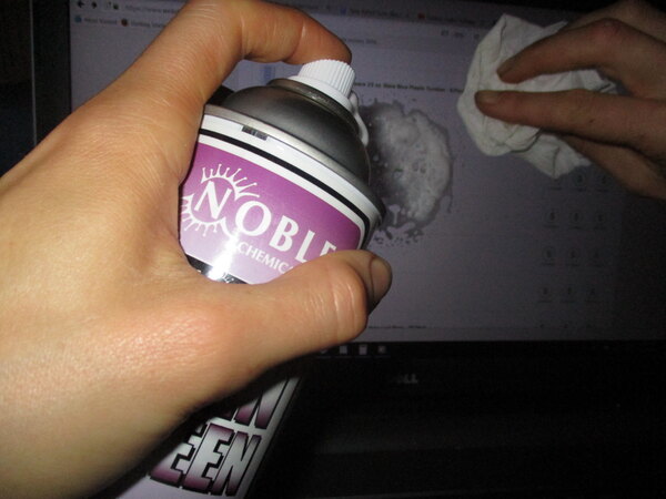 We just wall mounted a new TV and it was full of dust and fingerprints. We had just received Noble 15 oz. Kleen Screen Aerosol Electronic Screen Cleaner so we decided to give it a try. It sprays on thick, so you don't need much. It wipes off easily and streak free. The price here is way less than at retail stores and the product itself seems better than what I have purchased at big box stores in the past. All it took to get our new TV bright and shiny was one pass with Kleen Screen.