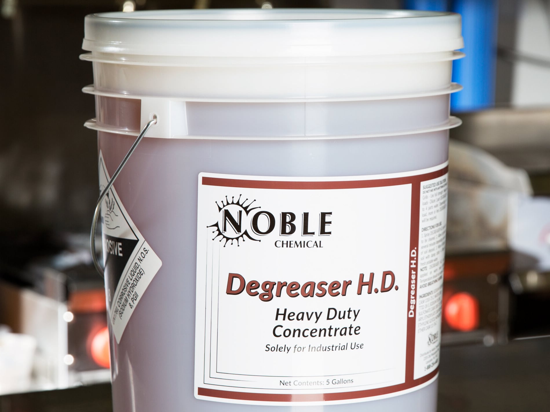To ensure you always have enough product to keep your kitchen clean, Noble heavy duty degreaser is sold in large 5 gallon containers.