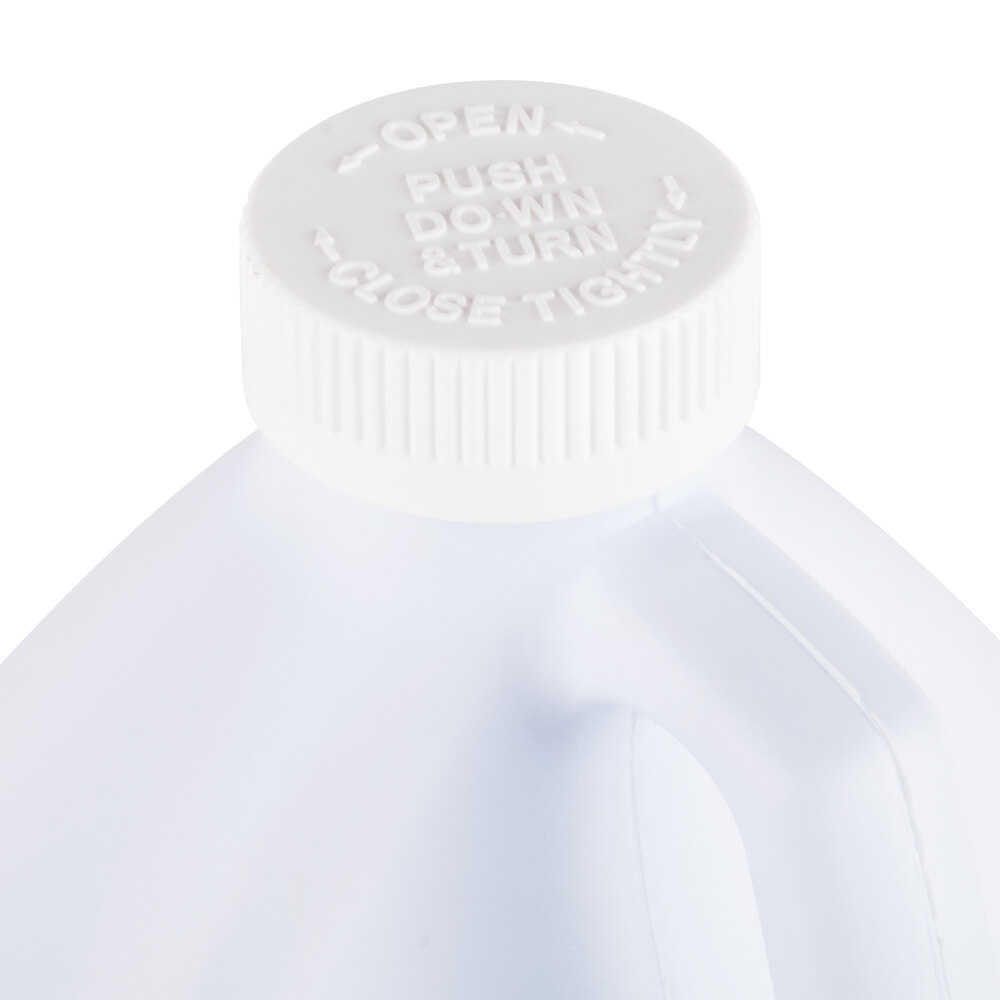 The Noble Actifoam acidic foam restroom cleaner bottle features a child-safe lid that must be pushed down and then turned.