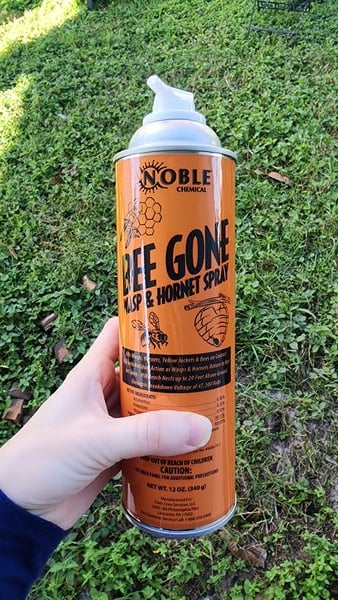 "This Noble Bee Gone Wasp & Hornet Spray - Aerosol 12 oz. was awesome. It kills the bees on contact and I was safe the entire time because they were not even able to fly over and attack me. Very good product and I will purchase this again."
