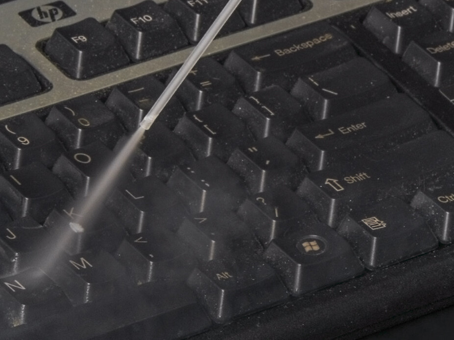 The Noble Dust B Gone Compressed Air Duster is great for dusting off hard to reach areas. It works great for cleaning keyboard crevices and if needed the internal pc components.
