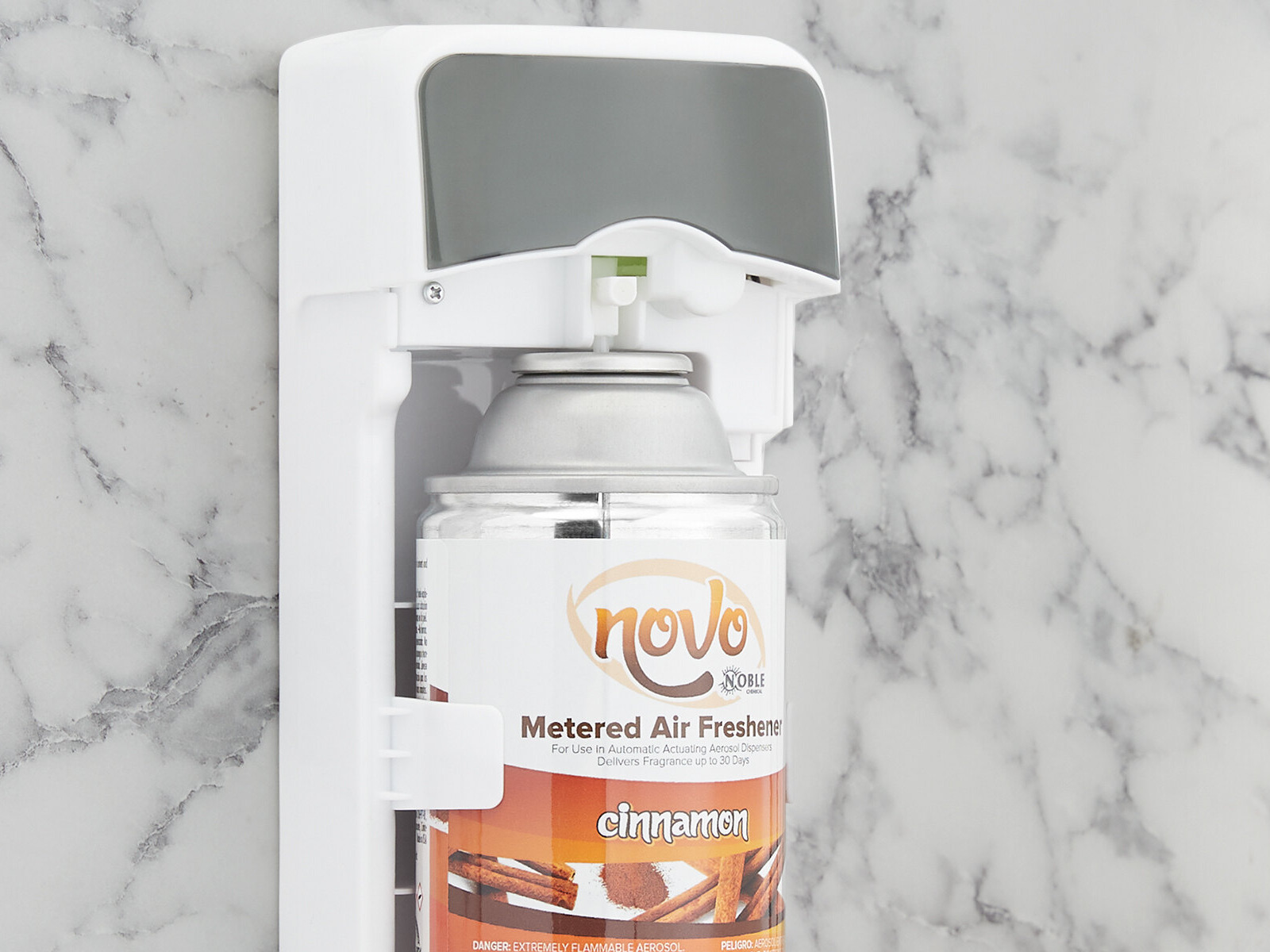 Keep your restrooms smelling fresh with Noble metered air freshener refills! Compatible with many actuating aerosol dispensers, they provide your business with the same great, long-lasting quality as other brands - at an unbeatable price!