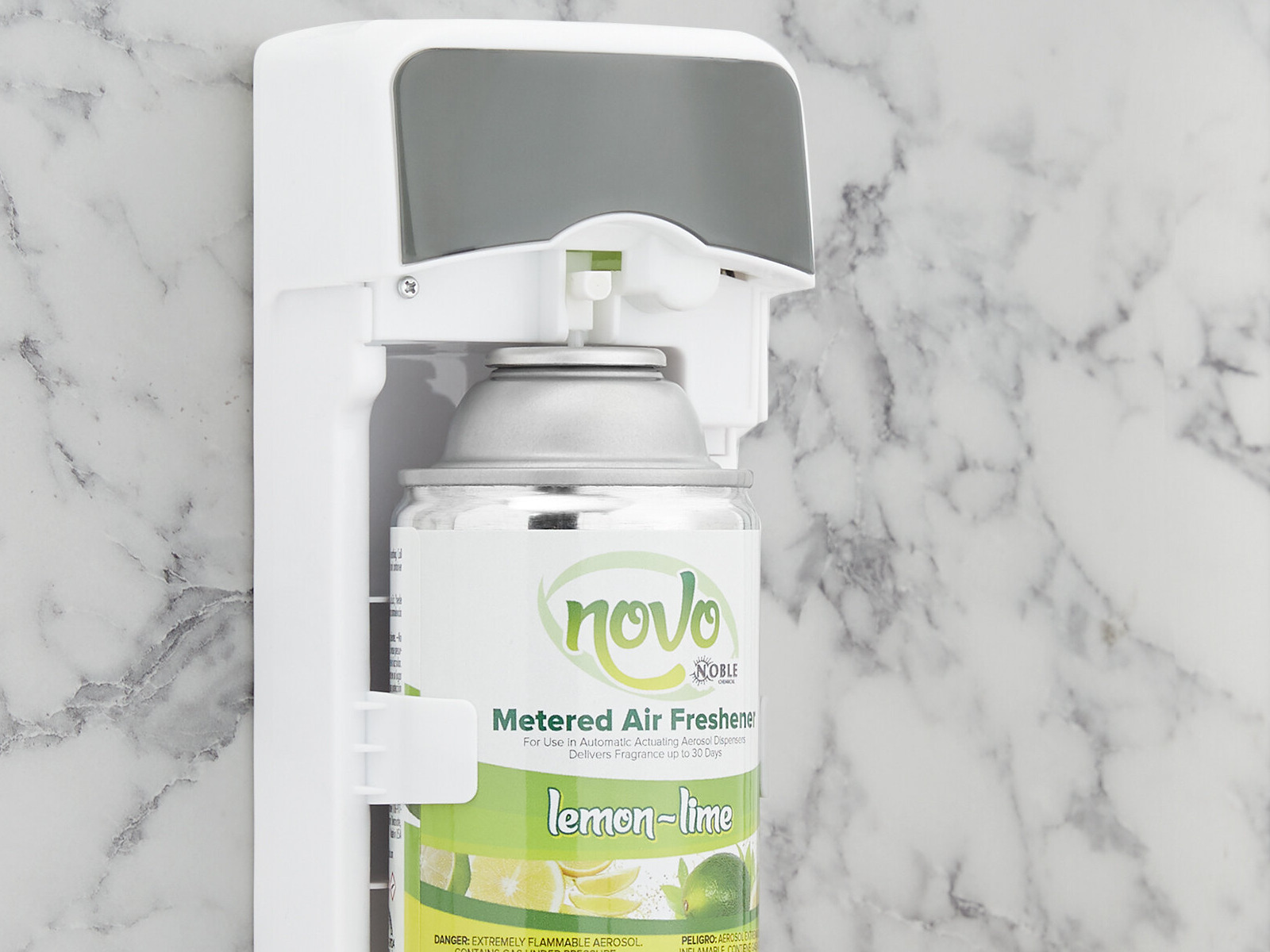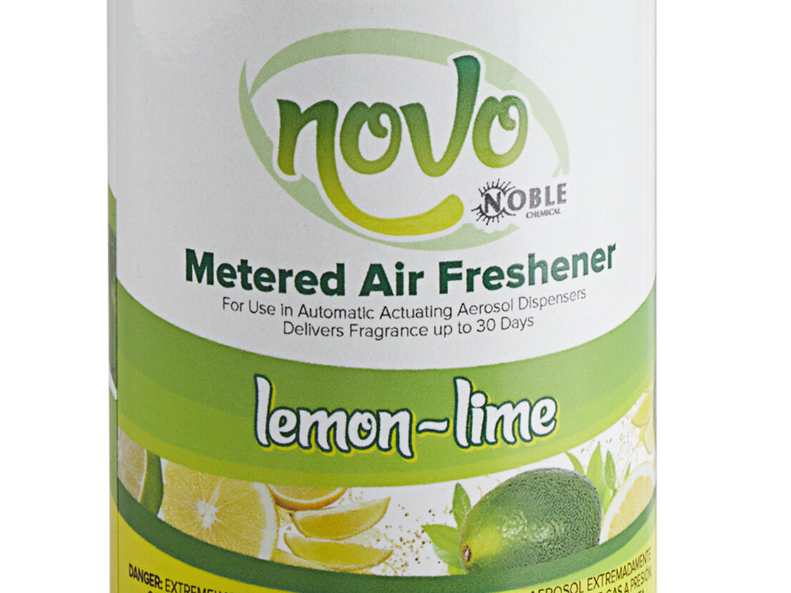 Novo 7.25 oz. Lemon-Lime Metered Air Freshener Refill - 12/Case is a great choice for catering businesses in need of a refreshing and long-lasting air freshener. The lemon-lime scent provides a pleasant aroma, and the metered design ensures a consistent and efficient distribution. The 7.25 oz. size and case of 12 make it a great value for commercial kitchens. I highly recommend it to customers who want a reliable and effective air freshener to create a pleasant environment.