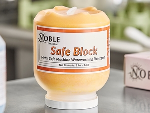 Noble's Safe Block detergent is designed to remove grease and food buildup on your dishes to improve their appearance after warewashing.