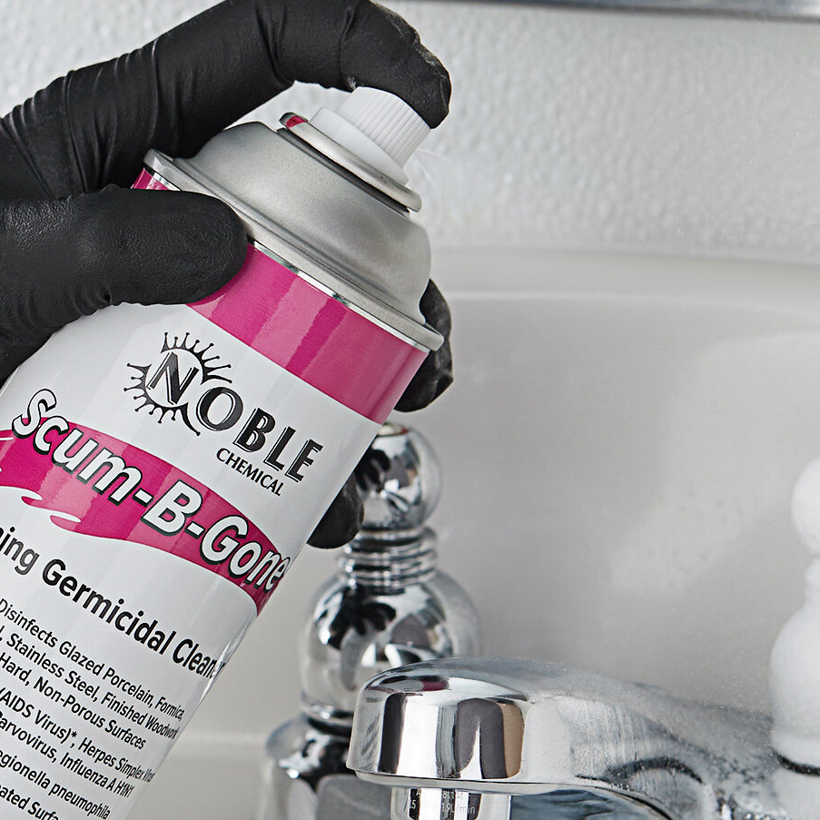 - Item #: 999scumbgonaNoble 18 oz. Scum-B-Gone Ready-to-Use Foaming Aerosol Germicidal Bathroom Cleaner