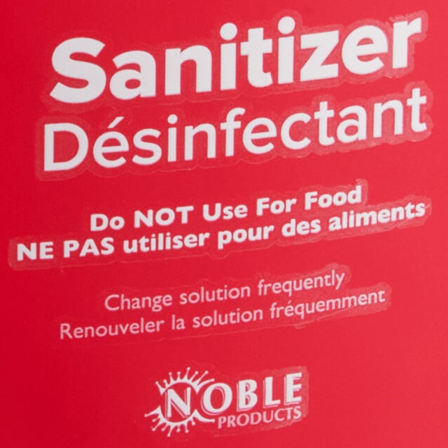 This Noble 3 qt. red sanitizing pail features everything you need to ensure employee compliance with health codes. English and French instructions are included on the bucket's front panel, and English and Spanish are located on the back panel. Additionally, the red color helps to avoid cross-contaminating buckets and solutions, and it adheres to HACCP guidelines.