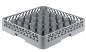 This Noble Warewashing gray full-size 36-compartment glass rack gives you the flexibility you need with the outstanding adaptability, versatility, and durability you want in today's food service establishment! When used with racks of different colors or colored extenders (sold separately), this rack makes a great addition to a color-coded warewashing operation.