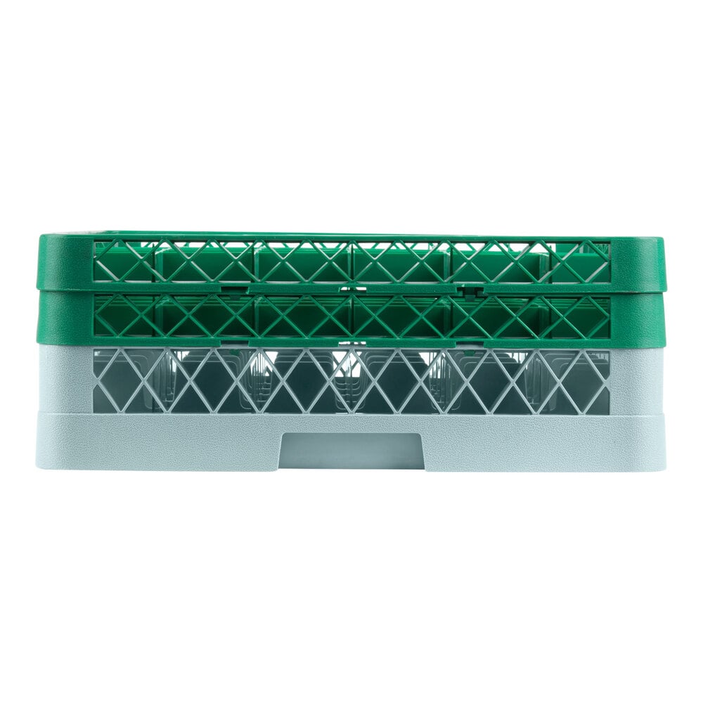 This Noble Warewashing gray full-size 36-compartment glass rack gives you the flexibility you need with the outstanding adaptability, versatility, and durability you want in today's food service establishment! With its two included green extenders, this rack makes a great addition to a color-coded warewashing operation.