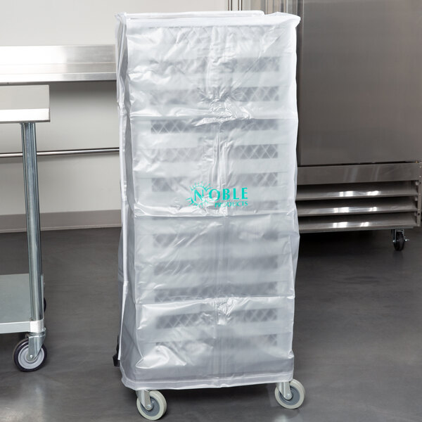Designed to fit over all brands of glass, flatware, and all-purpose dish racks, this Noble Warewashing 48" translucent vinyl glass rack dust cover keeps your dishes clean while not in use. Whether you're placing your dining sets in storage or transferring them into another location, this cover ensures safe and sanitary transportation.