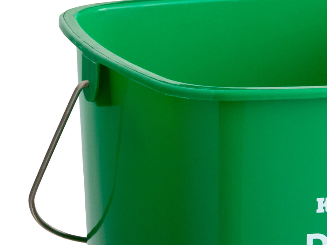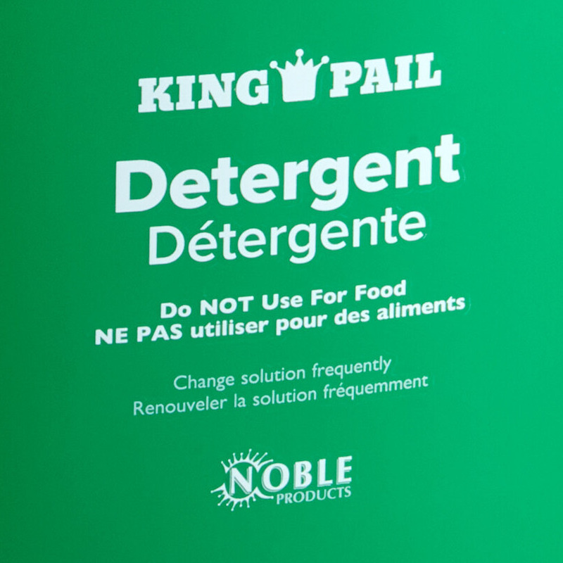 This Noble 6 qt. green cleaning pail features everything you need to ensure employee compliance with health codes. English and French instructions are included on the bucket's front panel, and English and Spanish are located on the back panel. Additionally, the green color helps to avoid cross-contaminating buckets and solutions, and it adheres to HACCP guidelines.