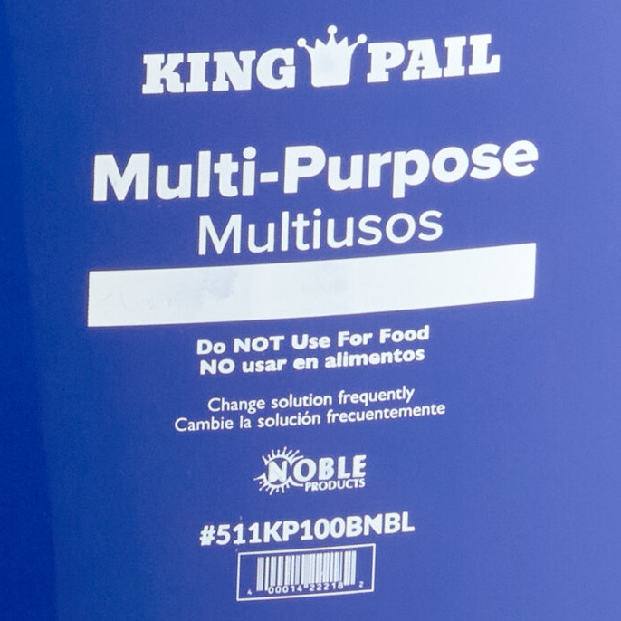 While its blue color adheres to HACCP guidelines to help prevent cross-contamination of cleaning solutions, its bold text clearly identifies its proper usage. Plus, it features trilingual labeling in English, Spanish, and French to further distinguish its purpose as a cleaning pail.