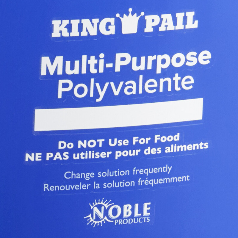 While its blue color adheres to HACCP guidelines to help prevent cross-contamination of cleaning solutions, its bold text clearly identifies its proper usage. Plus, it features trilingual labeling in English, Spanish, and French to further distinguish its purpose as a cleaning pail.