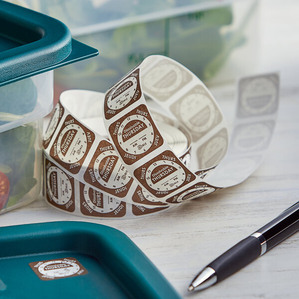 Help keep your back-of-house areas as organized and efficient as possible with this label. It's perfect for use with a First In, First Out (FIFO) system of perishables to optimize your kitchen's food safety and help minimize food waste. Its brown print readily identifies its Thursday design.