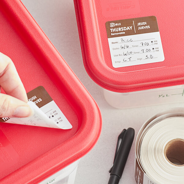 Help keep your back-of-house areas as organized and efficient as possible with this label. It's perfect for use with a First In, First Out (FIFO) system of perishables to optimize your kitchen's food safety and help minimize food waste. Its brown print readily identifies its Thursday design.