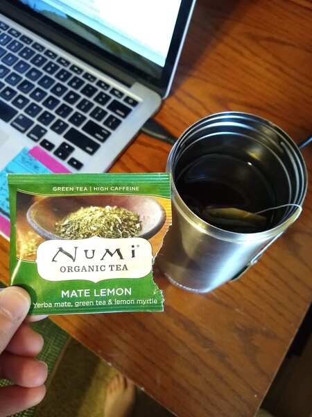 The Numi Organic Mate Lemon Tea Bags really pack a punch! The Yerba matte, really increases the caffeine load, so be careful! Great green tea taste, as well!