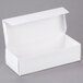 Offer classic, simplistic white packaging with this Simplex 8 7/8" x 3 3/4" x 2 3/8" 1-piece 2 lb. candy box at your bakery, candy shop, or restaurant. Your business can use this box to package fudge, taffy, cookies, candies, mints, and more. This universal white color is great for year round usage, as patrons can use it to celebrate all occasions. Plus, the box's pristine appearance is sure to catch everyone's attention!