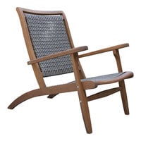Create a cozy atmosphere for your customers to relax in with this Outdoor Interiors driftwood gray wicker and eucalyptus lounger with built-in ottoman! This lounger is designed for optimum comfort with a contoured back and seat to provide exceptional support for your guests. It provides the comfort of an Adirondack chair with a modern, elegant style. This lounger also has a built-in sliding ottoman, which provides additional comfort to your guests. When not in use, the ottoman can be stowed away under the seat for a streamlined look. With a frame made of plantation-grown eucalyptus wood, this lounger has a beautiful brown umber stain that is sure to make it stand out. The eucalyptus is naturally resistant to insects and decay, making it perfect for outdoor use.