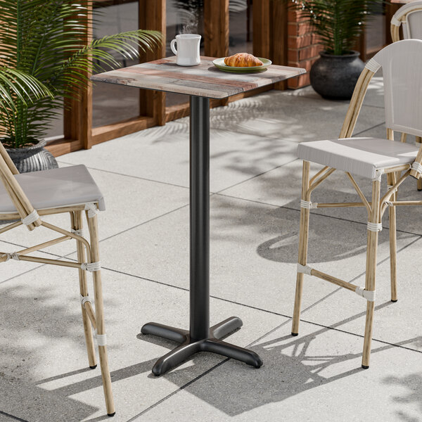 Lancaster Table & Seating Excalibur 24" x 24" Square Bar Height Table with Textured Mixed Plank Finish and Cross Base Plate