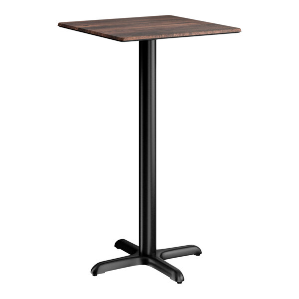 Lancaster Table & Seating Excalibur 24" x 24" Square Bar Height Table with Textured Walnut Finish and Cross Base Plate
