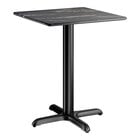 The included cross column table base elevates the table to standard dining height and ensures that the table stays steady and balanced while guests enjoy your signature drinks and dishes. Made of strong stamped steel with a sleek and resilient black e-coating, it's well equipped to weather the elements and resist corrosion. Blending into any environment to enhance your dining space, this table base and column are sure to provide reliable long-lasting use at both indoor and outdoor eateries. Plus, pre-drilled holes allow for the use of floor glides to protect your flooring from scuffs and scratches!