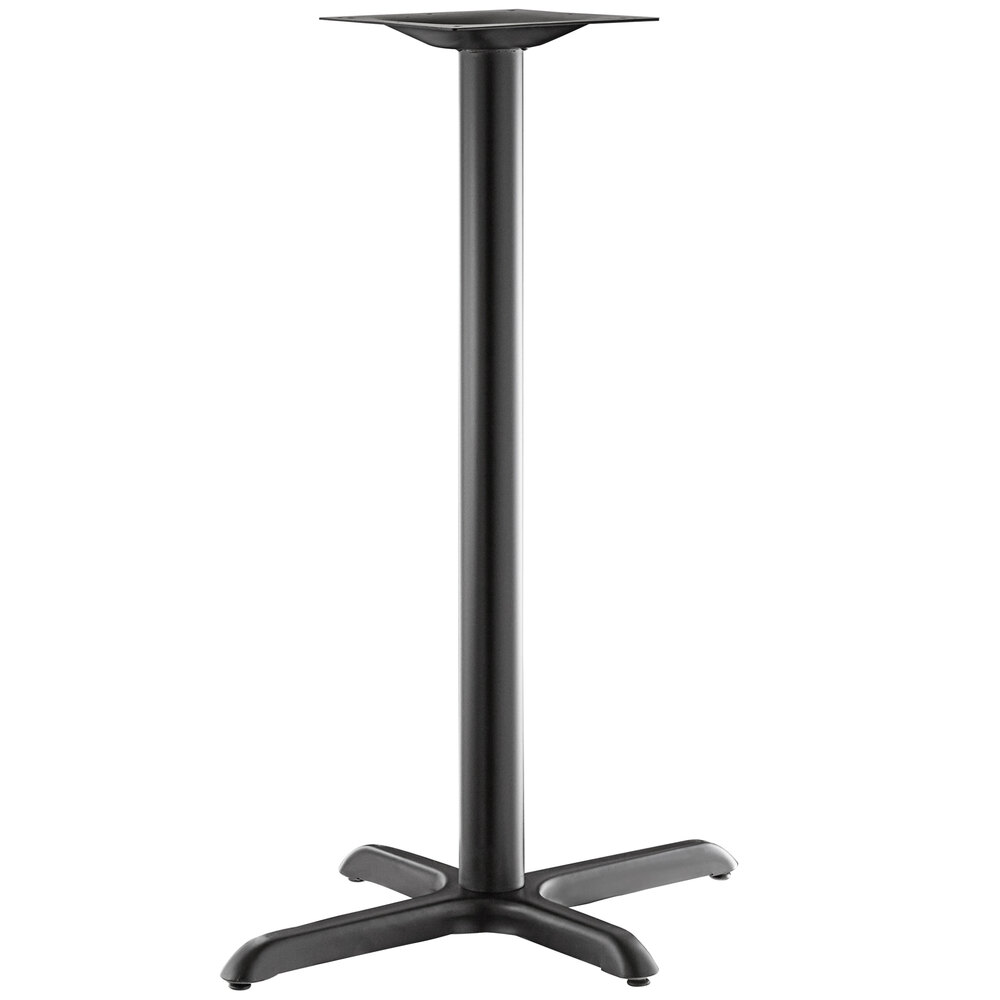 The included cross column table base elevates the table to bar height and ensures that the table stays steady and balanced while guests enjoy your signature drinks and dishes. Made of strong stamped steel with a sleek and resilient black e-coating, it's well equipped to weather the elements and resist corrosion. Blending into any environment to enhance your dining space, this table base and column are sure to provide reliable long-lasting use at both indoor and outdoor eateries. Plus, pre-drilled holes allow for the use of floor glides to protect your flooring from scuffs and scratches!