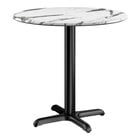 The included cross column table base elevates the table to standard dining height and ensures that the table stays steady and balanced while guests enjoy your signature drinks and dishes. Made of strong stamped steel with a sleek and resilient black e-coating, it's well equipped to weather the elements and resist corrosion. Blending into any environment to enhance your dining space, this table base and column are sure to provide reliable long-lasting use at both indoor and outdoor eateries. Plus, pre-drilled holes allow for the use of floor glides to protect your flooring from scuffs and scratches!