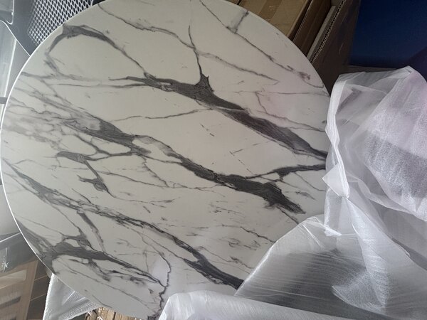 This round table has a smooth versilla finish that offers the classic look of marble at a fraction of the cost. Whether you're looking to revamp your restaurant's front-of-house space or enhance the appearance of your cafe patio or deck, this table top will spotlight the beauty of nature while focusing on an elegant dining experience in order to bring you the best of both worlds! To save you money on shipping costs, the table ships unassembled. All required assembly hardware is included so you can quickly set it up in its proper space and let your guests enjoy!