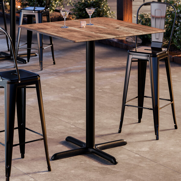 Lancaster Table & Seating Excalibur 36" x 36" Square Bar Height Table with Textured Yukon Oak Finish and Cross Base Plate