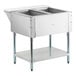 The table's galvanized steel undershelf is easy to assemble and adjust as needed. It's a great place to store extra pots, pans, and plates! The body and top are made of durable, easy-to-clean stainless steel for long lasting performance, while the legs are made of galvanized steel with adjustable plastic bullet feet. This table features 3500 BTUs per burner, fiberglass insulation between each compartment, and single phase wiring. It is designed for either dry or wet heat holding. For wet heating, add a spillage pan with 1-2" of water. 1/2" female NPT connector to regulator included.