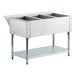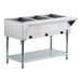 The table's galvanized steel undershelf is easy to assemble and adjust as needed. It's a great place to store extra pots, pans, and plates! The body and top are made of durable, easy-to-clean stainless steel for long lasting performance, while the legs are made of galvanized steel with adjustable plastic bullet feet. This table features 3500 BTUs per burner, fiberglass insulation between each compartment, and single phase wiring. It is designed for either dry or wet heat holding. For wet heating, add a spillage pan with 1-2" of water. 1/2" female NPT connector to regulator included.