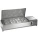 Ideal for storing and organizing condiments in preparation for assembling a large order of sandwiches or packed lunches, this prep station could also be used at self-service cafes, kiosks, and cafeterias. The unit requires a 115V electrical connection.