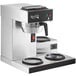 Its external stainless steel construction gives it a sleek appearance and makes it easy to clean. To ensure you can keep up with busy hours, this compact brewer can produce up to 60 8 oz. cups of coffee per hour. This coffee maker connects to a 3/8" rear mounted water line that fills the reservoir. With independent controls for warming and brewing, you can easily set this coffee machine to fit your needs. This unit requires a 120V electrical connection for operation.