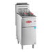 This floor fryer features a cool zone in its fry tank, collecting excess batter and crumbs and allowing them to sink to the bottom of the tank for easy cleaning. A 1 1/4" ball-type full port drain lets you quickly remove used oil, and its thermostat allows temperature adjustment from 200 to 400 degrees Fahrenheit. This unit boasts a durable 430 type stainless steel tank, while its galvanized steel housing, door, and top back panel ensure a strong structure. This fryer comes with 2 wire mesh fry baskets with coated handles to offer reliable heat protection and a comfortable grip. Its 6" adjustable legs make it easy to clean the floor underneath and allow for stable use on any floor.