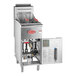 This floor fryer features a cool zone in its fry tank, collecting excess batter and crumbs and allowing them to sink to the bottom of the tank for easy cleaning. A 1 1/4" ball-type full port drain lets you quickly remove used oil, and its thermostat allows temperature adjustment from 200 to 400 degrees Fahrenheit. This unit boasts a durable 430 type stainless steel tank, while its galvanized steel housing, door, and top back panel ensure a strong structure. This fryer comes with 2 wire mesh fry baskets with coated handles to offer reliable heat protection and a comfortable grip. Its 6" adjustable legs make it easy to clean the floor underneath and allow for stable use on any floor.