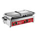 Scratch and Dent Avantco PG400GST Commercial Dual Panini Sandwich Grill with Timer, Grooved Top and Smooth Bottom Plates, and 19 5/8" x 9 1/8" Cooking Surface - 120V, 3500W