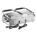 Create your most popular sandwiches, quesadillas, hamburgers, and more with the Avantco PG400GST dual panini sandwich grill with timer, grooved top and smooth bottom plates, and 19 5/8" x 9 1/8" cooking surface! This sandwich grill features 3500 watts of heating power for fast and thorough cooking as well as a timer. The 8 1/2" x 8 1/2" top grooved grill plates provide tantalizing grill marks for an excellent presentation, and its 19 5/8" x 9 1/8" smooth bottom plate ensures complete contact with your product and a consistent, even heat supply. In addition, specialized hinges allow the top plate to lay flat against the food rather than at an angle, ensuring complete contact and uniform cooking, and handles on the sides make the unit safe and easy to carry.