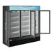 Increase your sales of "grab and go" items like bottled tea and soda, or pre-packaged sandwiches and salads with this Avantco GDC-69-HC 78 1/4" black merchandising refrigerator! Designed with sharp looks and usability in mind, this unit is the perfect display for your products with its sleek finish. And, since the housing is made from black coated steel, you can be sure that it will provide superior durability. This unit boasts 3 anti-fogging, dual-pane tempered glass swing doors to ensure that customers always have a clear view of your products, while 12 epoxy-coated steel shelves help you stay organized. Plus, the shelves easily adjust to accommodate salads, wraps, or sandwiches. Interior LED lighting on the right side also works to illuminate and further merchandise your products.