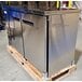 Providing 17.3 cu. ft. of interior storage space, the unit fits up to (2) 1/2 kegs and houses (4) 23 5/8" x 18 1/8" shelves that each accommodate up to 88 lb. The epoxy-coated steel shelves in this food-rated unit are perfect for storing and organizing heavy bulk ingredients for your bar service, from bottles of ale and beer to fresh fruit for mixed drinks and garnishes. The interior, made of strong 304 type stainless steel, is accessible through two sliding glass doors, taking up less precious space behind the bar and making it easy to grab drinks and garnishes quickly. This unit features easy-to-use digital temperature controls to make setting and changing the temperature simple. In addition, this refrigerator has interior LED lighting to maximize product visibility. Even if your bar area is dimly lit, bartenders and servers will have no trouble finding the drinks and garnishes they need. For overall durability, the unit's exterior is made with sleek stainless steel and is topped with a type 304 stainless steel surface.. The stainless steel top of this cooler can double as a garnish cutting and drink preparation space.