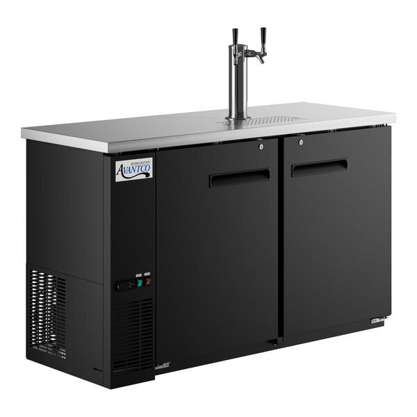 Whether you operate a pub, banquet hall, catering service, or facilitate other special events, this Avantco UDD-2-HC beer dispenser is an excellent way to offer crisp, refreshing draft beer to your guests without investing in a complex built-in tap system! This unit features a 2 tap tower with a 10 1/4" faucet height that allows you to easily fill pint glasses and pitchers with local microbrews, international macrobrews, and everything in between. It holds (2) 1/2 kegs so you can stock up on one brew or offer customers a choice between a few options, and it even comes with 2 shelves for optional bottle or can storage while concealing the product behind 2 solid doors. The doors themselves are not only self-closing to prevent potential energy loss, but also lock to prevent theft during off hours. This unit is equipped with knockout plugs to install external CO2 lines.