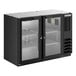 Thanks to its narrow, 23 1/2" depth, the Beverage-Air B48HC-1-G-B 48" black back bar refrigerator will increase efficiency and profits at your bar, club, or restaurant! Constructed to hold two standard kegs while taking up minimal space, this back bar refrigerator's self-closing glass doors enhance the visibility of your products and include a lock for security.