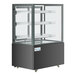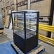 Display your signature cakes, pies, cookies, and muffins with ease using this Avantco 35 3/8" black square dry bakery display case with LED lighting! This floor unit is made to allow you to place your baked goods in a convenient location where they can merchandise themselves to hungry customers. Whether you are looking for a bakery case to place at the front of your coffee shop near your point of sale or a case to set up in your diner where the customers can see your dessert selection while they eat, this unit is a great option.