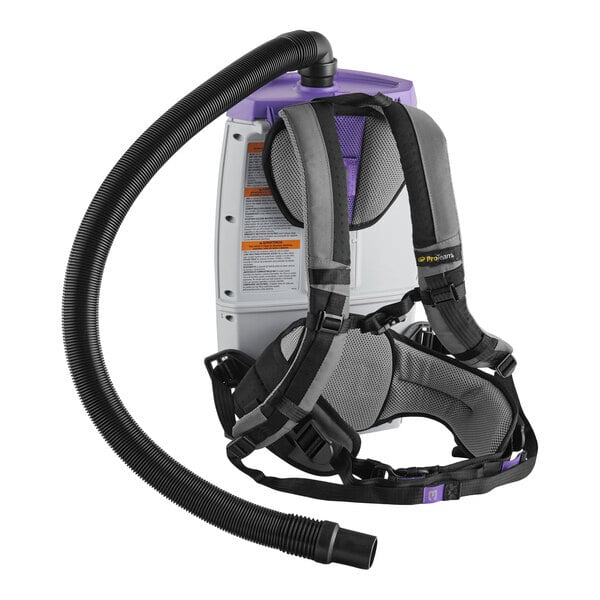 This vacuum is ergonomically designed with a 4-step FlexFit articulating harness, which is inspired by hiking backpacks and rests comfortably on the user's hips for hours of wear. Plus, the harness's purple numbered touchpoints provide a customized, quick-adjust fit with no tools required. With its ProLevel filtration system with HEPA media, this vacuum helps reduce allergens and asthma triggers found in indoor environments. It captures 99.9% of dust mites, pollen, bacteria, and other particulates that are 0.3 to 0.5 microns in size.