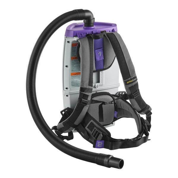 This vacuum is ergonomically designed with a 4-step FlexFit articulating harness, which is inspired by hiking backpacks and rests comfortably on the user's hips for hours of wear. Plus, the harness's purple numbered touchpoints provide a customized, quick-adjust fit with no tools required. With its ProLevel filtration system with HEPA media, this vacuum helps reduce allergens and asthma triggers found in indoor environments. It captures 99.9% of dust mites, pollen, bacteria, and other particulates that are 0.3 to 0.5 microns in size.